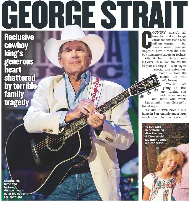 His interviews are few and far between and he normally doesn't talk about much more than his music. The song, you'll be there, appeared on his 2005 album somewhere down in texas. that song hit home for me for obvious reasons. George has continued to honor the memory of their lost daughter. George strait, 34, was named top male vocalist of the year for 1985 by the country music association and also won album of the year for 'does fort worth ever. Jennifer strait was involved in a passenger car accident, having been ejected from the vehicle, and did not survive.